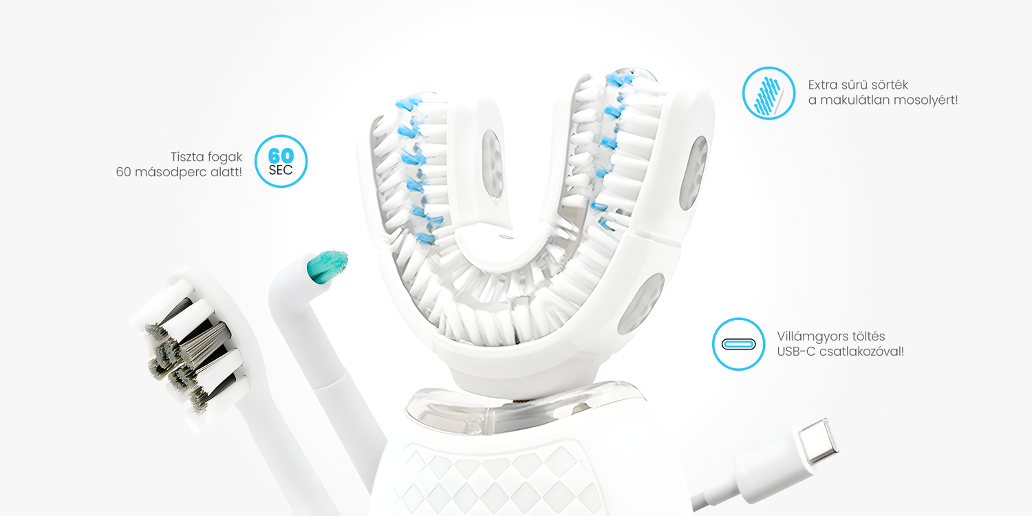 Fedezd fel a jövĆ szĂĄjhigiĂ©niai megoldĂĄsĂĄt! A U-Brush extra sƱrƱ sörtĂ©kkel biztosĂtja a teljes körƱ tisztĂtĂĄst, mindössze 60 mĂĄsodperc alatt.