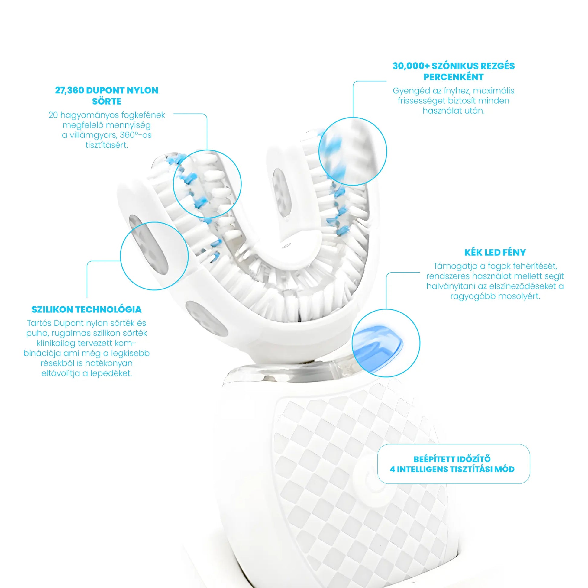 4 intelligens üzemmód: fehérítő kékfényes, kényelmi, tisztító és erős mód